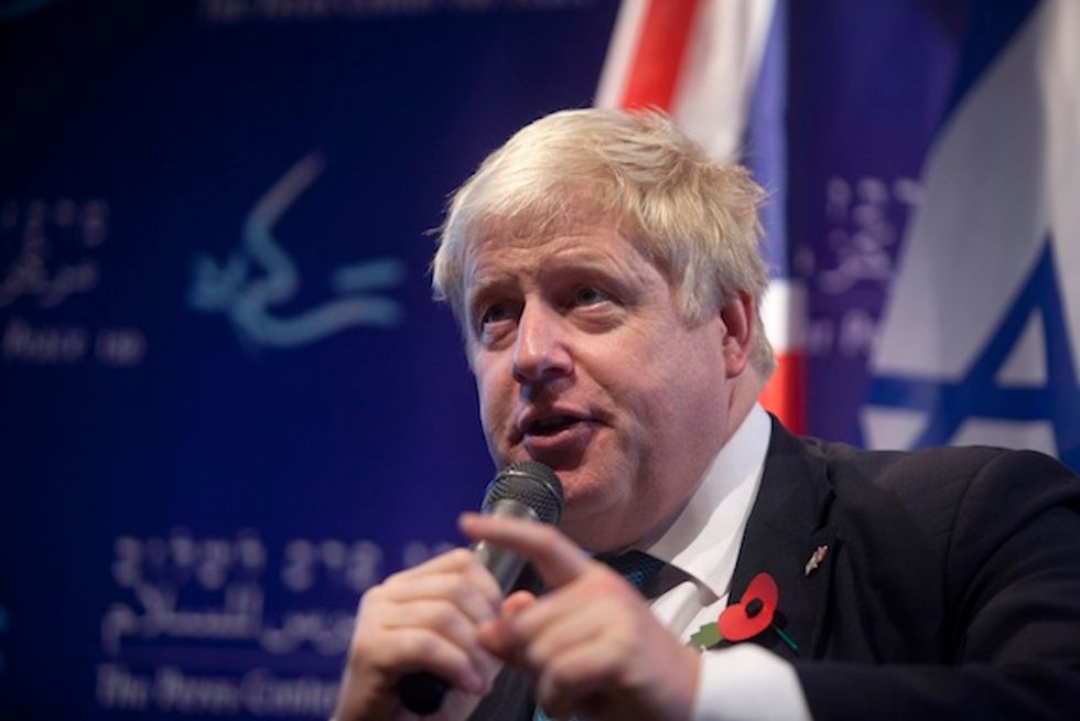 Mayor of London Boris Johnson speaks during a meeting with Former Israeli President Shimon Peres at the Peres Center for Peace on November 9, 2015 in Jaffa, Israel. Johnson arrived in Israel on Monday in a bid to boost London's economic ties with the region. The Mayor will begin his visit in Tel Aviv before traveling to Jerusalem and Ramallah. (Lior Mizrahi/Getty Images)