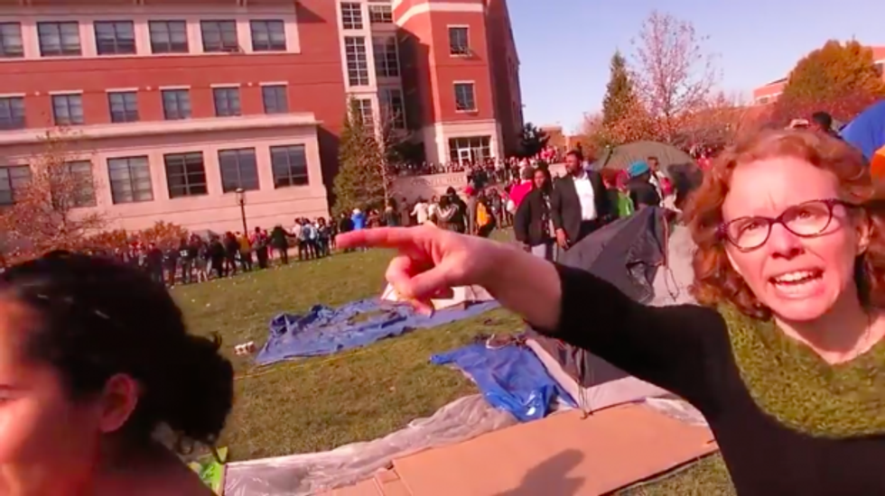 University of Missouri communications professor Melissa Click requesting Mark Schierbecker be removed. (Image source: YouTube screenshot)