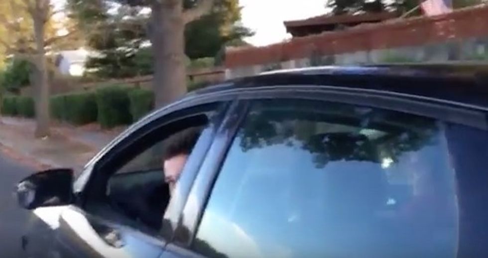 Right when it seemed like the confrontation was over and Lundstrom moved with his camera away from the car, the teen made a comment indistinguishable in the video's audio, but the parent took note.
