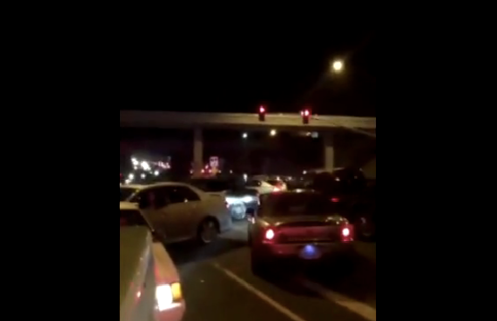 A video obtained by KRON-TV shows an intersection completely blocked with cars pointed in every direction. Sirens, gun shots, shouting and tires squealing can be heard throughout the duration of the video.