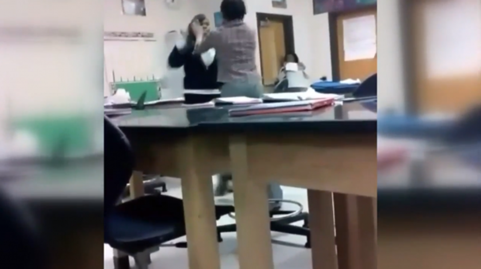 Singleton said she tried to walk away from the angry teacher, but the teacher allegedly refused and then pushed her. That's when the fight ensued.