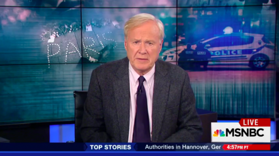 "Let me finish tonight with two numbers that don't make sense," Matthews said on his show before starkly contrasting the number of Syrian refugees — 4 million — and the number of Syrians recruited by the U.S. to fight the Islamic State — four.