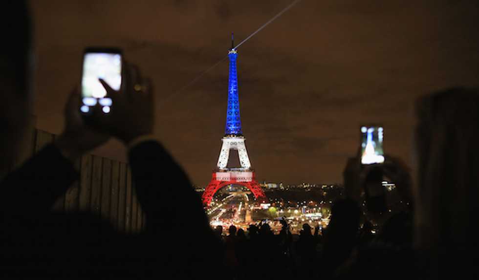The Eiffel Tower is illuminated in Red, White and Blue in honour of the victims of Friday's terrorist attacks on November 16, 2015 in Paris, France. (Photo by Christopher Furlong/Getty Images)