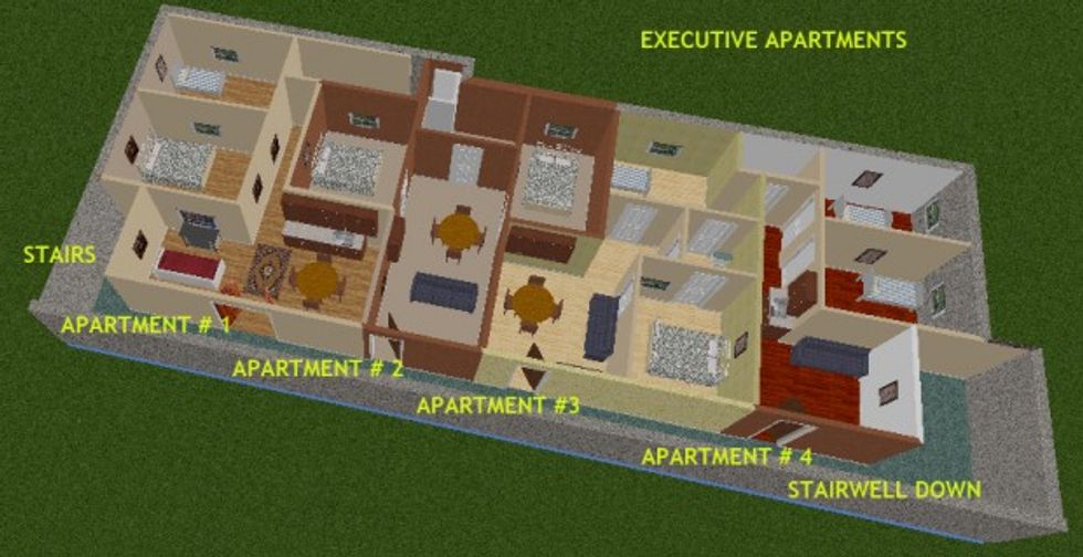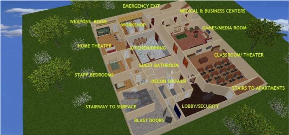 The dwelling space located 45 feet underground features two levels and has four luxury apartments. "The Facility," as 123 Private Drive is more commonly known, is capable of withstanding a 20-kiloton nuclear blast.