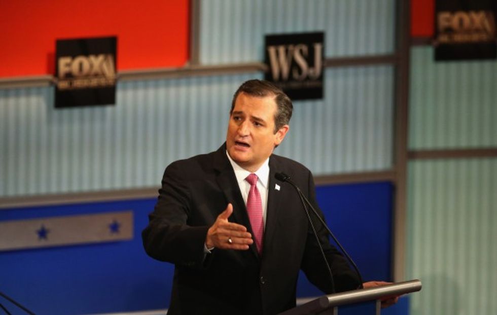 Sen. Ted Cruz (R-TX) speaks during the Republican Presidential Debate sponsored by Fox Business and the Wall Street Journal at the Milwaukee Theatre November 10, 2015 in Milwaukee, Wisconsin. (Photo by Scott Olson/Getty Images)