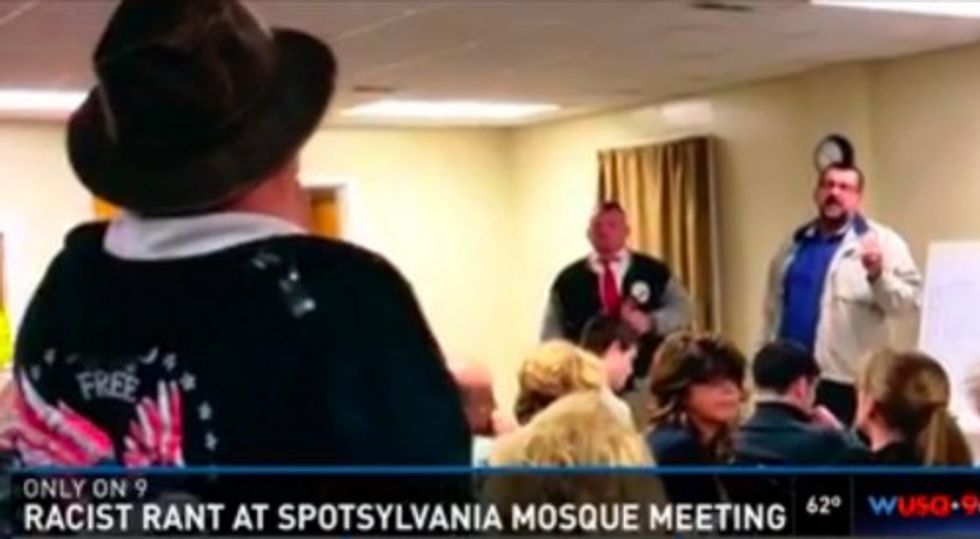 At least two men were caught on video going on anti-Islam rants at a Virginia public meeting over the proposed construction of a mosque.