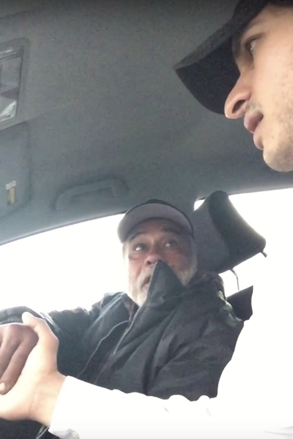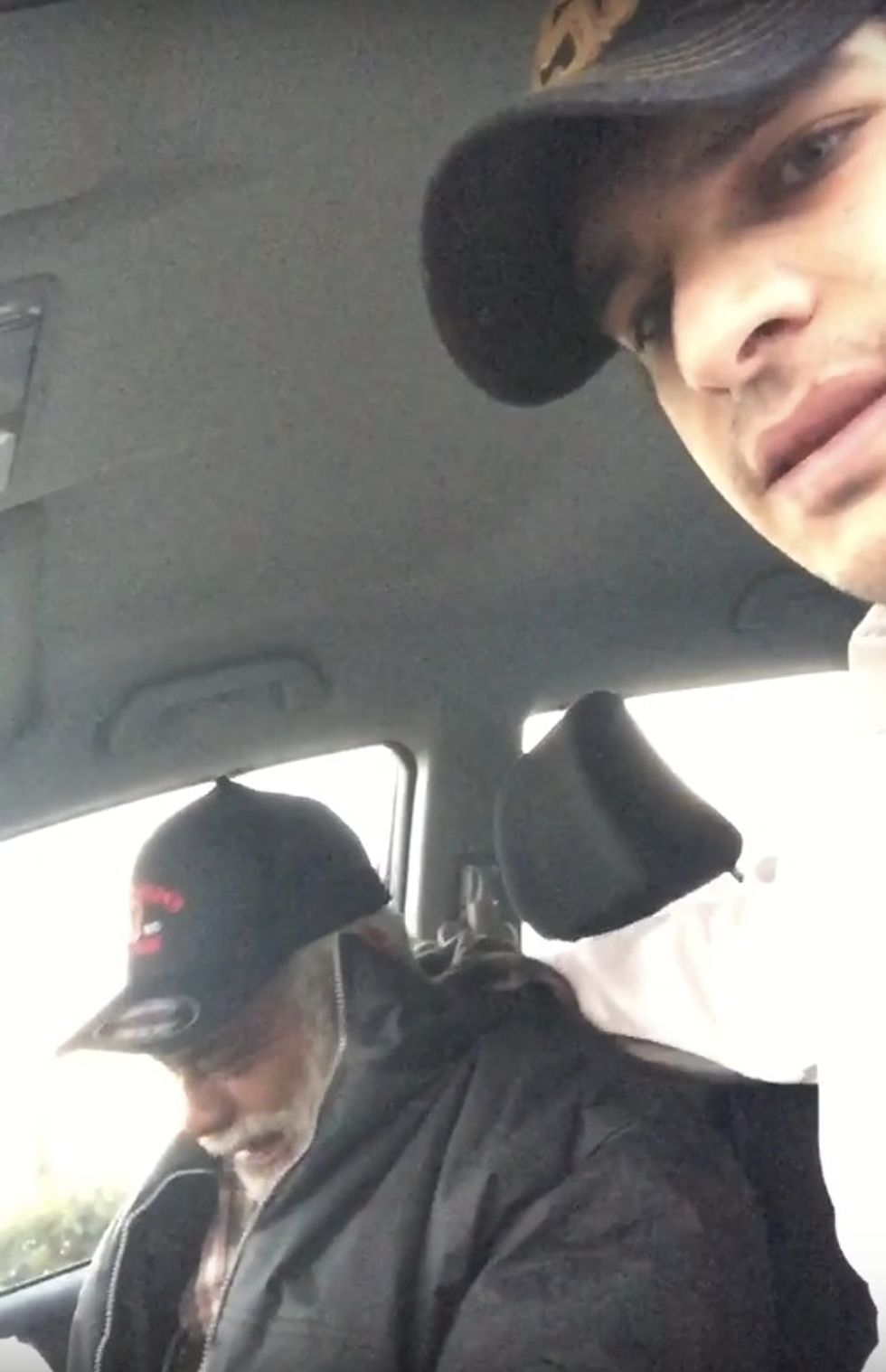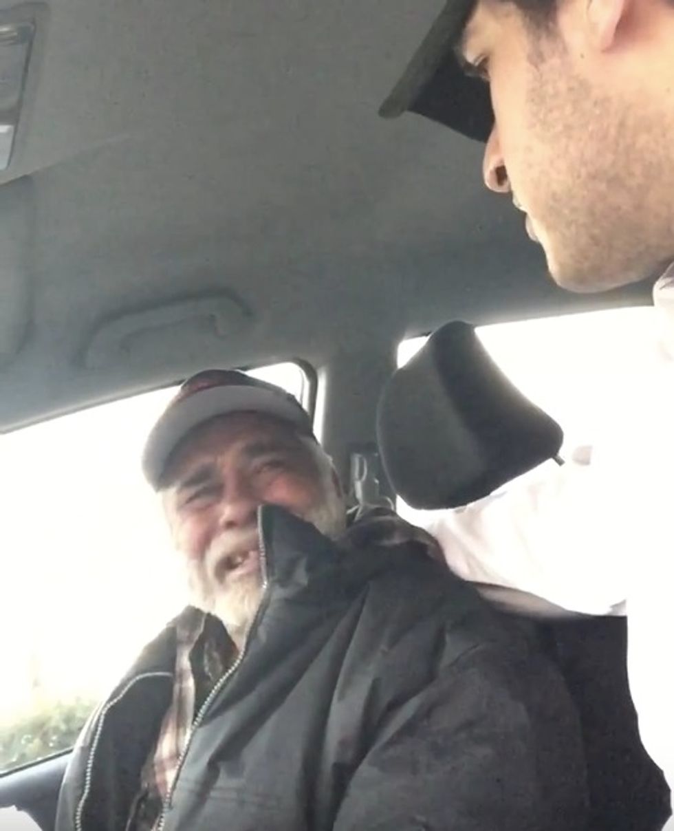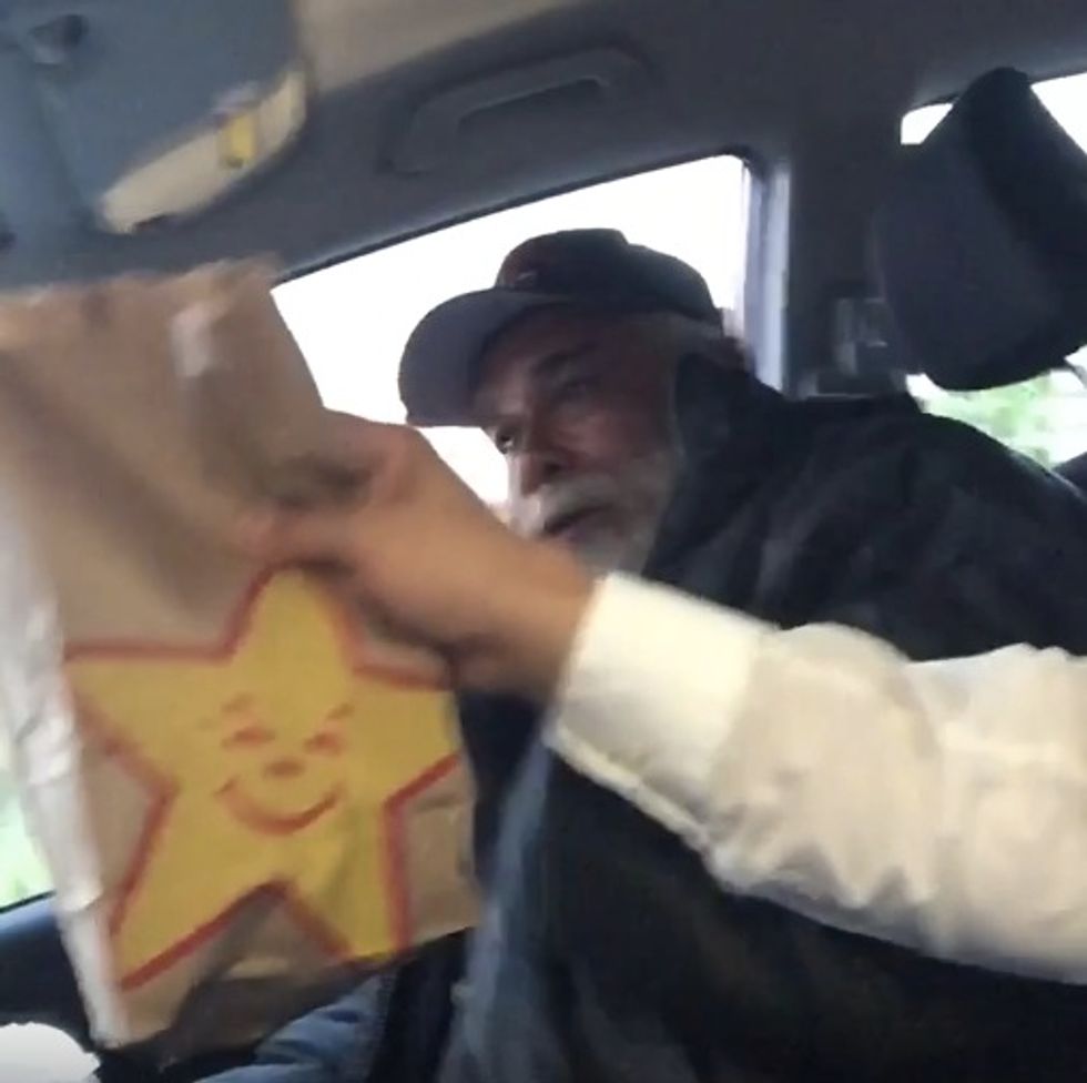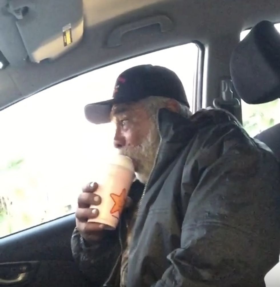 The pair pulled into a drive-thru of what appears to be a Carl's Jr. restaurant, and Zahir handed the grateful vet a drink and some food.