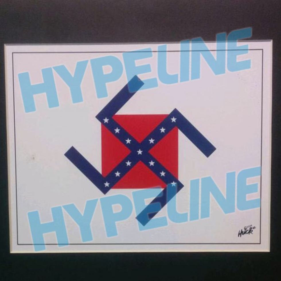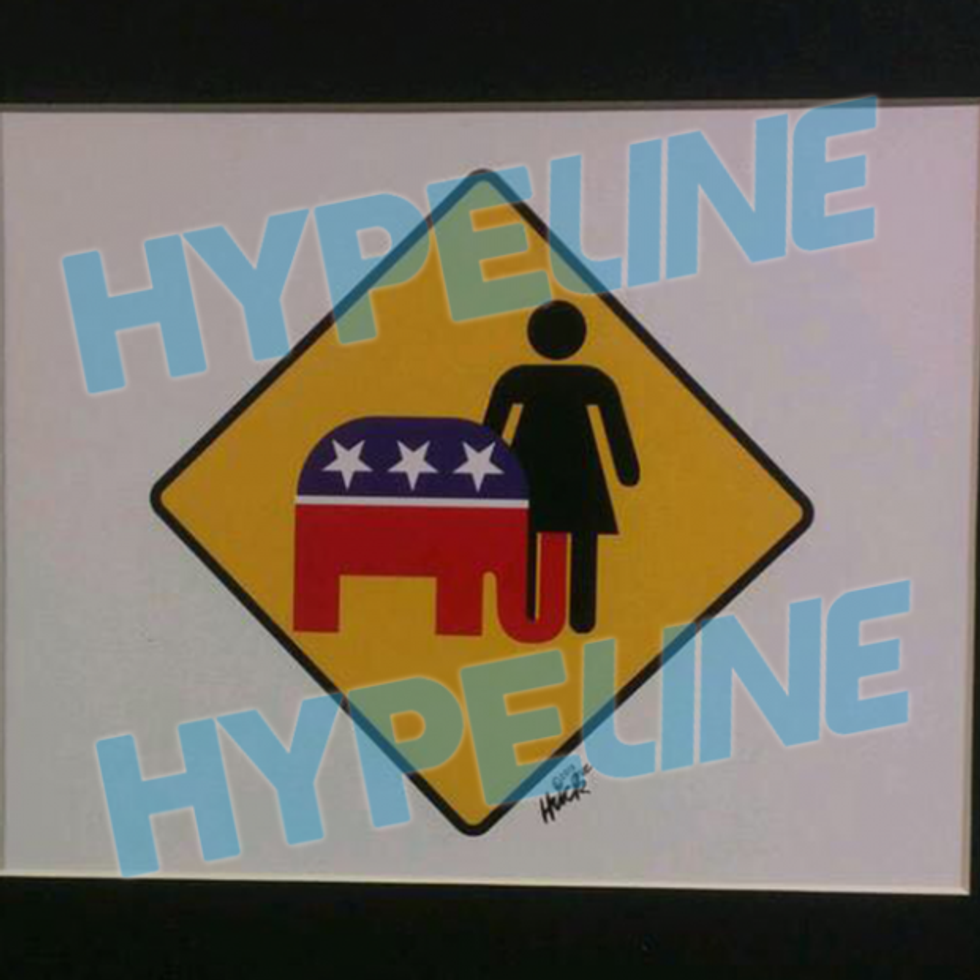 One of the cartoon images obtained by Hypeline features the GOP elephant as "Jihadist John" about to behead a man wearing a shirt emblazoned with the words "working class." A second illustration appears to depict the Republican logo sexually assaulting a female. A third image shows a Confederate flag made into a swastika.