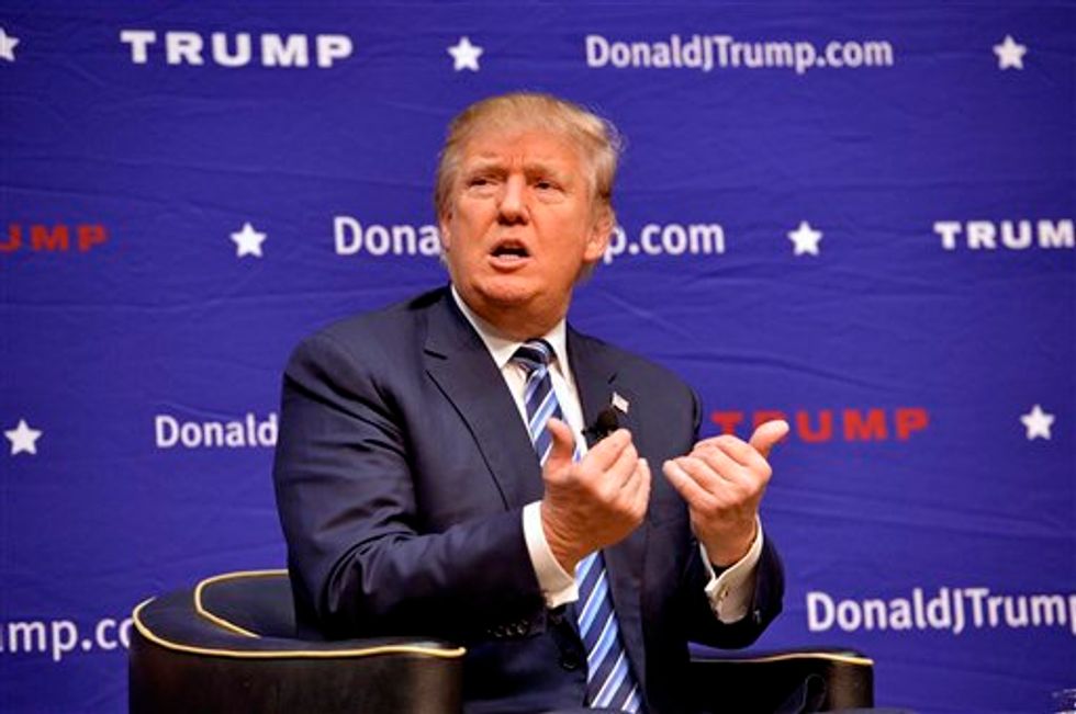 Republican presidential candidate Donald Trump speaks during a town hall meeting at the Ben Johnson Arena on the Wofford College campus, Friday, Nov. 20, 2015, in Spartanburg, S.C. (AP Photo/Richard Shiro)