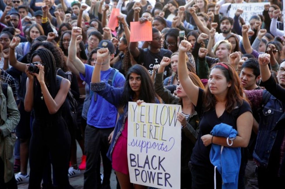 University California Los Angeles students stage a protest rally against racism, Thursday, Nov. 12, 2015 in Los Angeles. (AP Photo/Nick Ut)