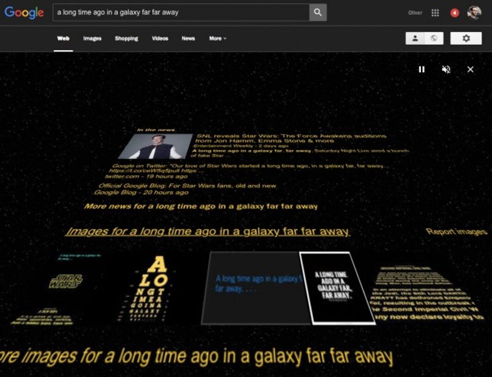 If you head over to Google and enter the search term "a long time ago in a galaxy far far away," the search engine will display the relevant results in the same format as the movie's iconic opening crawl.