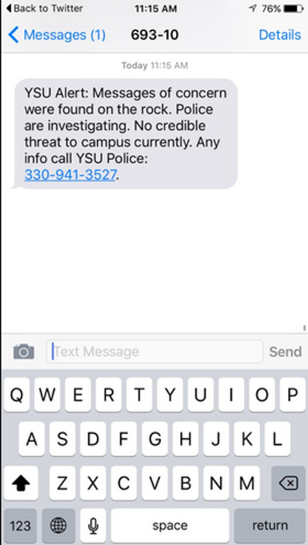 Youngstown State University students awoke to pro-Islamic State messages painted onto a rock on campus when they awoke Monday morning.