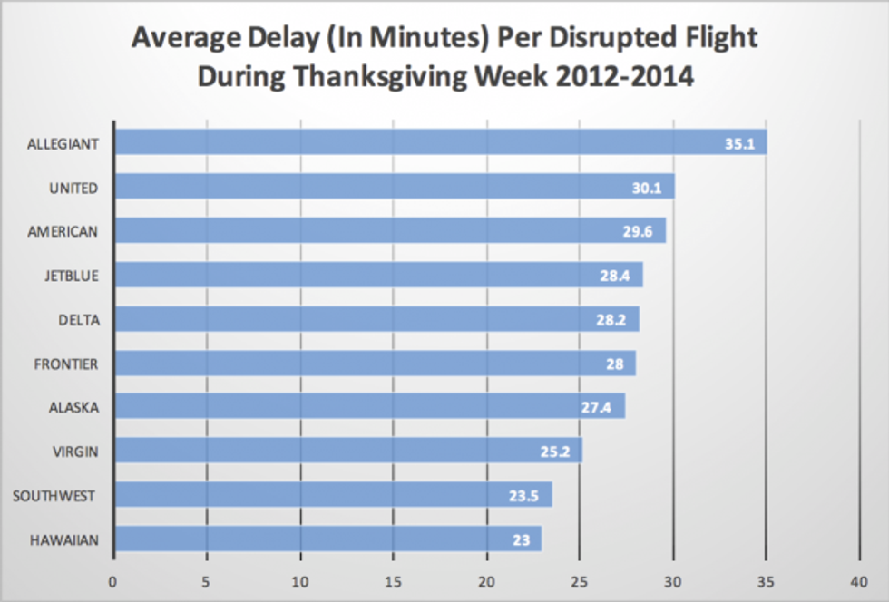 The airlines with the longest average delays during Thanksgiving week.