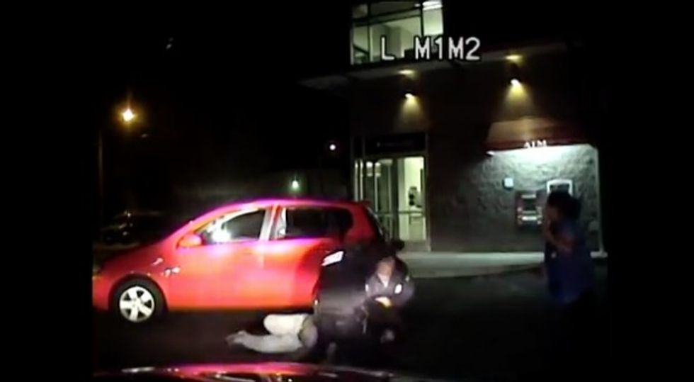 According to KOMO, the officers punched the suspect 17 times. After this suspect was subdued, the video showed one officer go around to the back of the vehicle. The car blocks the view of what exactly happened, but a man was heard screaming.