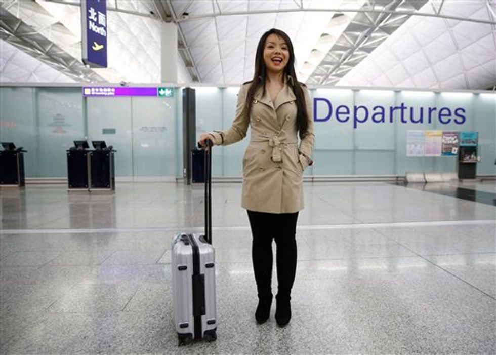 Dressed in black leggings and a belted tan trench coat, Lin was approached by several fellow travelers in the Hong Kong airport arrival hall who wanted to take her photo.