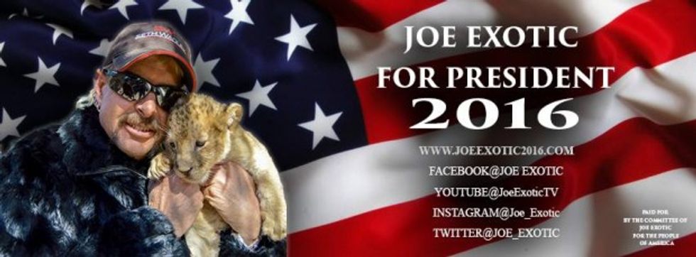 Joe Maldonado — more commonly known as Joe Exotic — makes a living keeping and protecting animals, and as he announced last week, he wants to do the same for people.