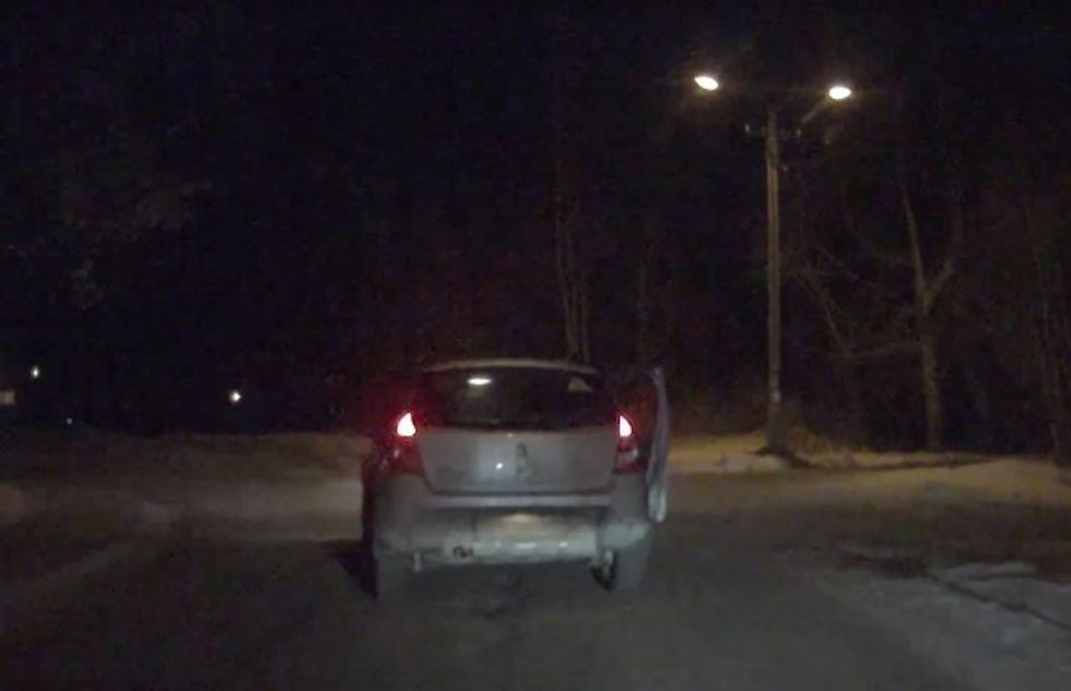 A dashcam video captured the moment a bundled-up toddler apparently opened a door of a moving vehicle and fell face-first to the street.