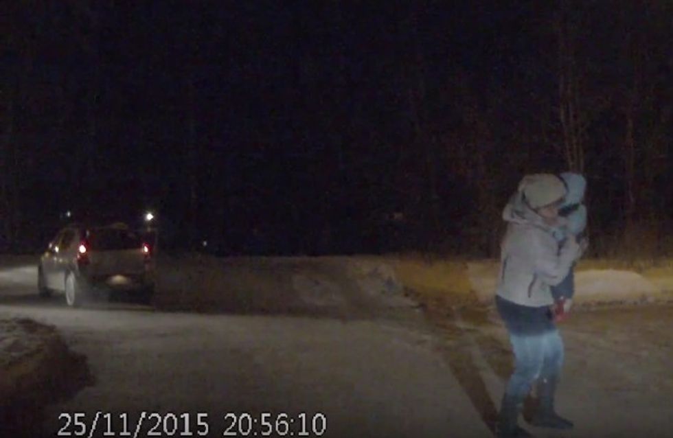 The dashcam was in the trailing vehicle, which stopped just feet from the child.