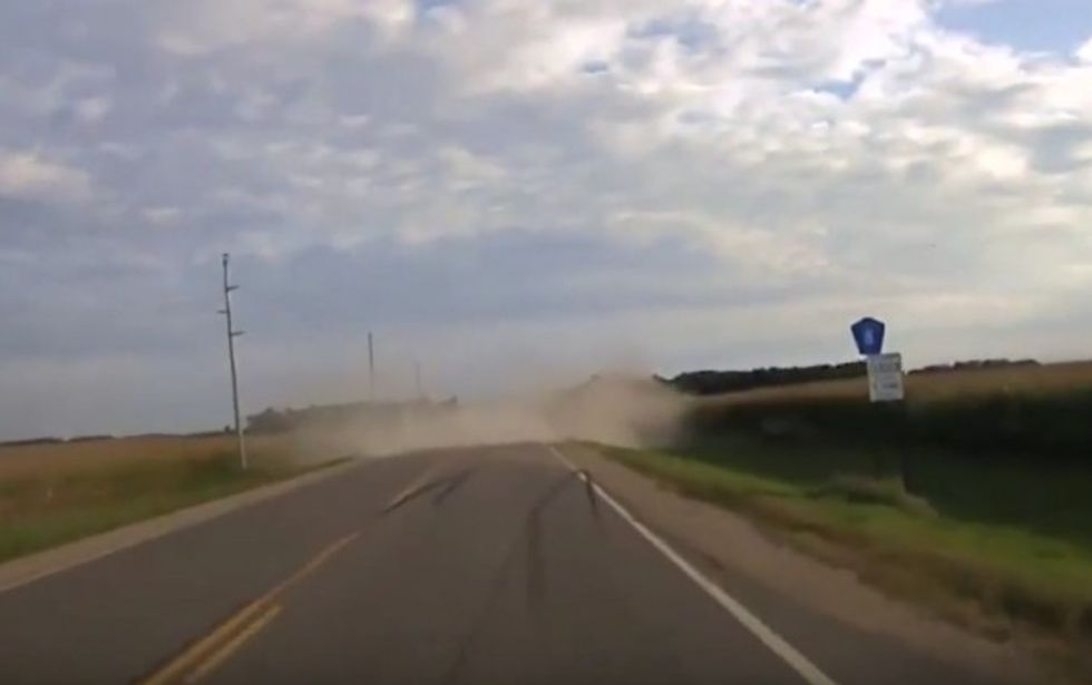 "Luckily the driver of the eastbound pickup sees the vehicle and brakes moments before the impact," the sheriff's office noted on its website. "If not for his quick reaction ... the accident could have been very serious if not fatal."