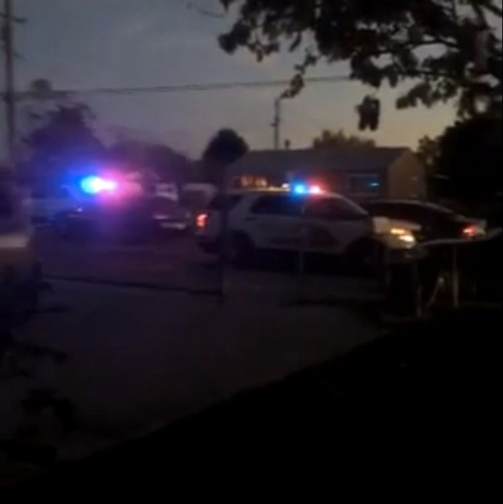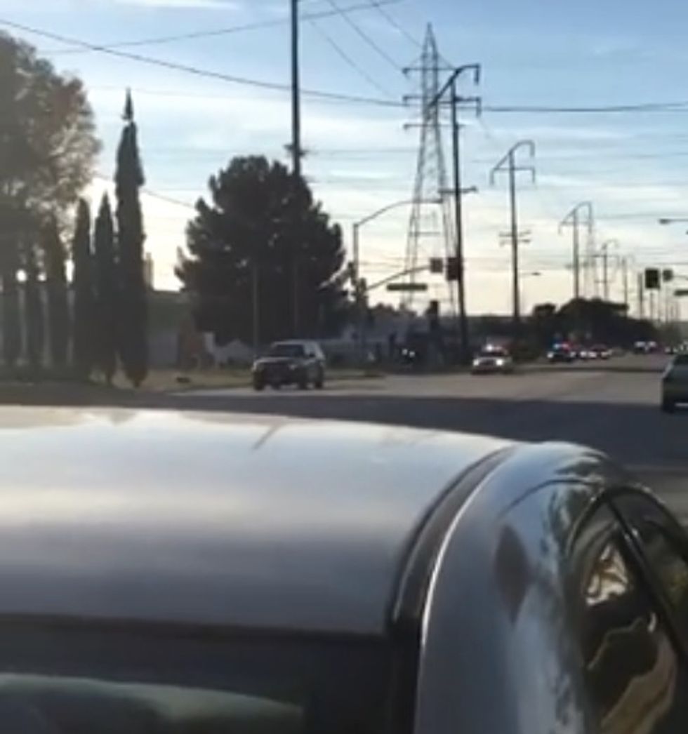 After they passed by and stopped a few houses away, police converged on the suspects' vehicle and a barrage of gunfire ensued.
