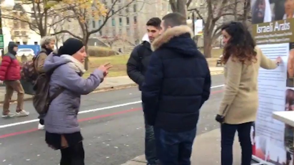 Little did this woman lambasting visiting Israelis know she was giving a big compliment to their country. (Image source: Stand With Us)