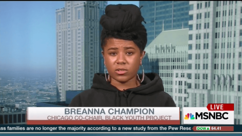 Black Lives Matter activist Breanna Champion on MSNBC Thursday, Dec. 10. (Image source: YouTube)