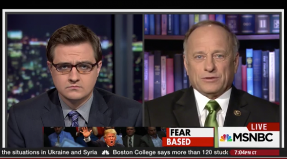 Earlier in the segment, Hayes used Donald Trump's proposed temporary ban on Muslims entering the U.S. to play the "what if" game, asking King how he'd feel if someone proposed to bar Jews from entering the country.