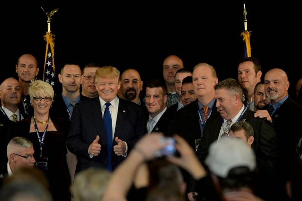 Donald Trump stands with law enforcement officers, December 10, 2015. (Getty Images/Darren McCollester)