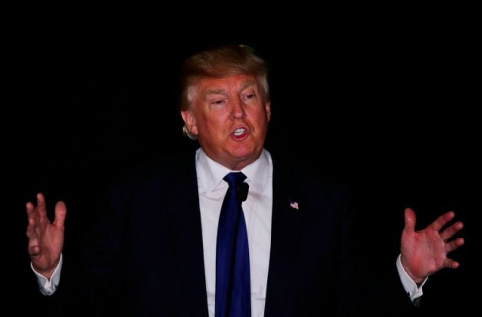 Republican presidential candidate, businessman Donald Trump gestures at a regional police union meeting in Portsmouth, N.H., Thursday, Dec. 10, 2015. (AP Photo/Charles Krupa)