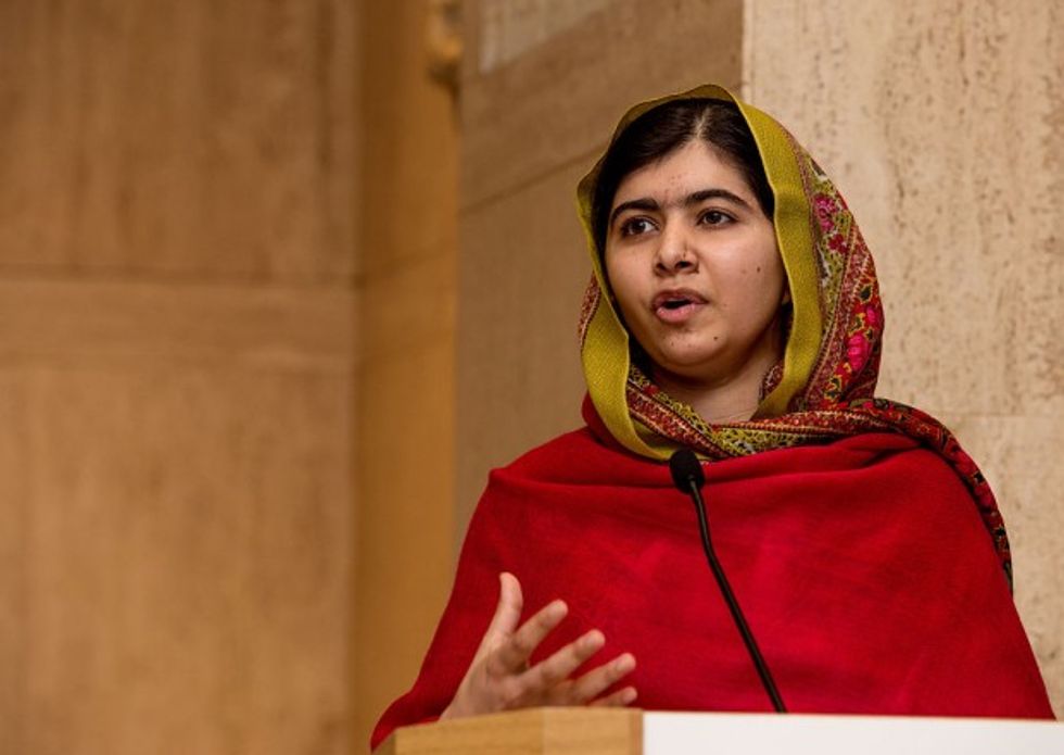 The 18-year-old Pakistani, who was shot in the head by the Taliban in 2012, was speaking at a memorial ceremony for people who died in a Taliban attack last year at a school in Peshawar, Pakistan. Of the more than 150 who were killed, 134 were school children.