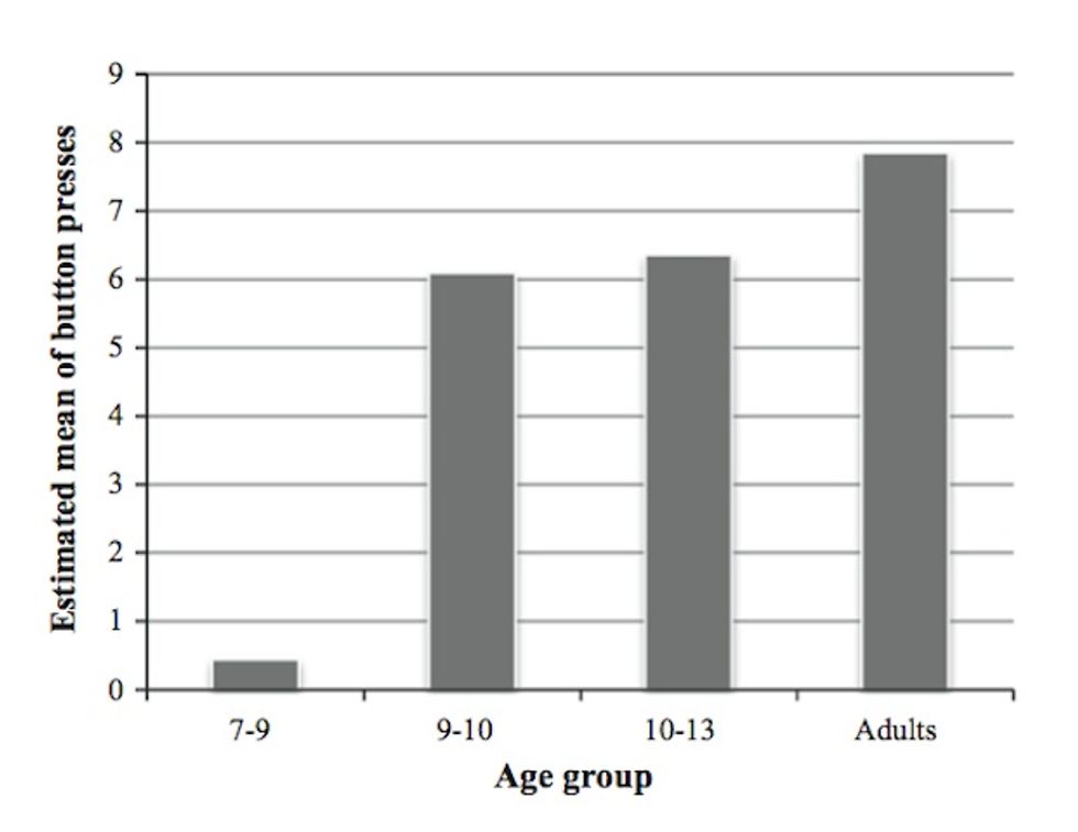 Adults pressed the hazard button far more times than the children did in scenarios that simulated striped zebra crosswalks, parked vehicles, one- and two-way streets, and crossing near a road curve. There is a major difference between adult and children’s responses, particularly the youngest children tested: