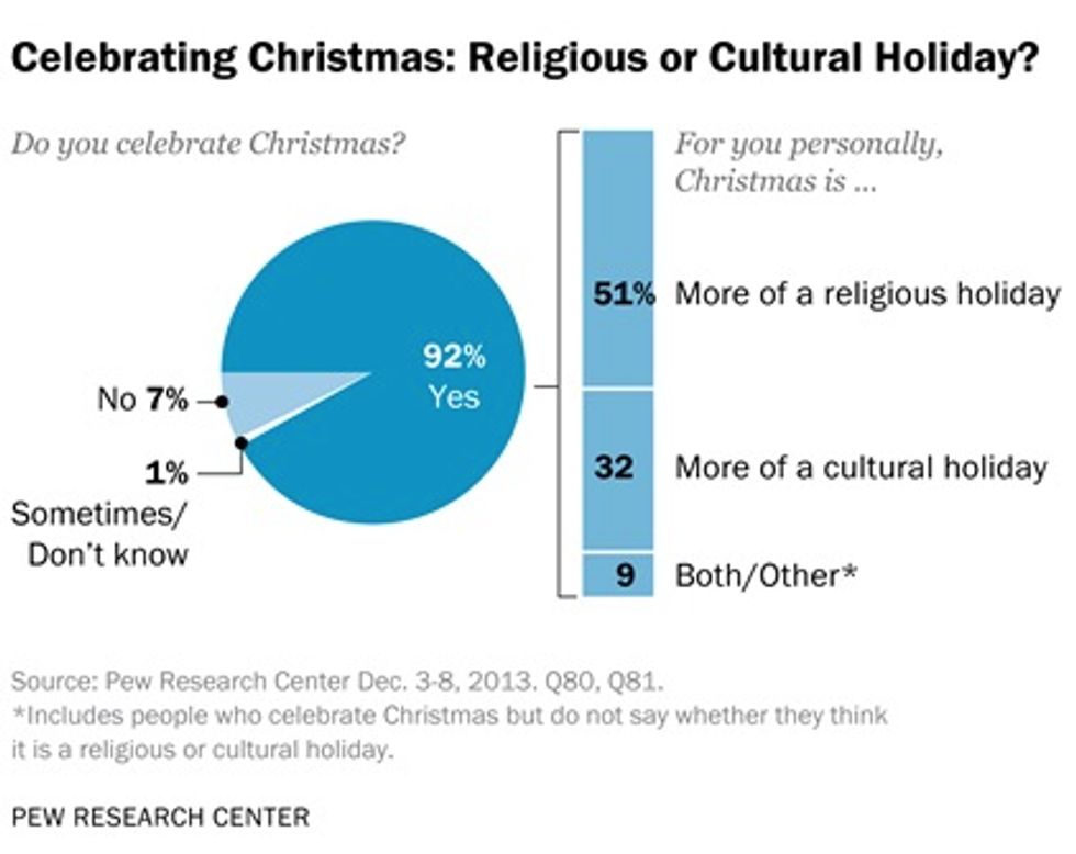 Fifty-one percent of Americans said they celebrate Christmas as a religious holiday, and 32 percent said they celebrate it as a cultural one.