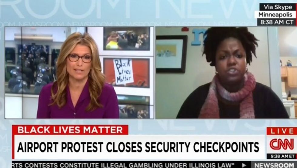 When questioned by CNN’s Carol Costello about the Black Lives Matter movement’s decision to disrupt a Minneapolis airport on Wednesday amid terror concerns, Asha Long replied with a point that didn’t seem to answer the question.