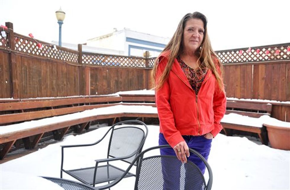 In this Wednesday, Dec. 16, 2015, shows Dalene Bowden, a former cafeteria worker at Irving Middle School poses for a photo in Pocatello, Idaho. (Doug Lindley/Idaho State Journal via AP)
