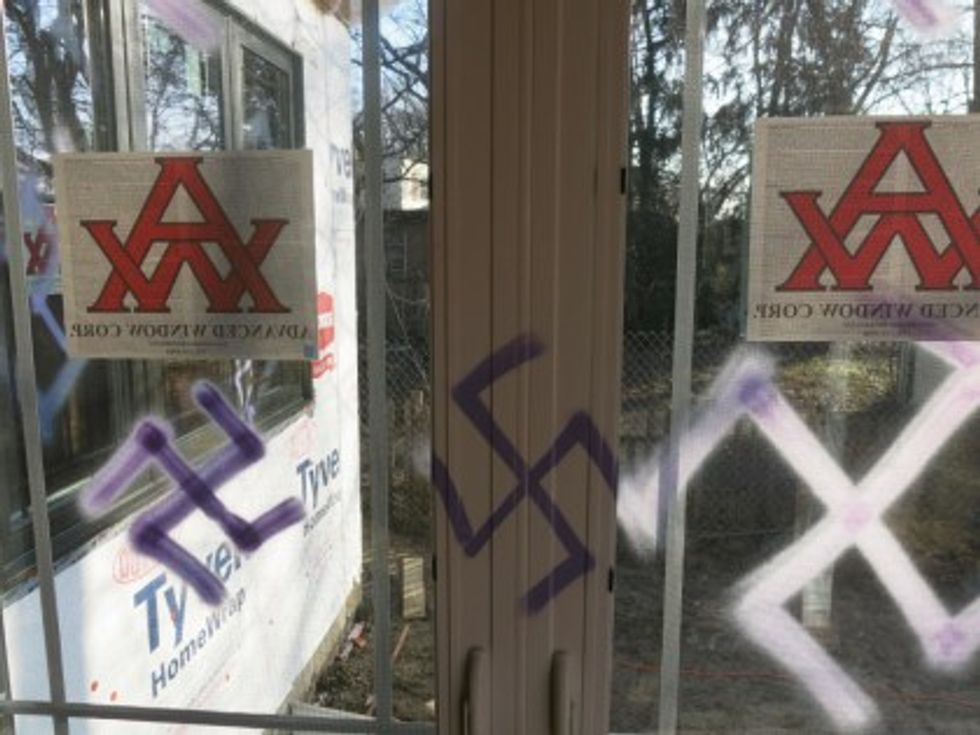 After receiving a call on Christmas Day, Riverside officers went to the house — which was under construction and partially open — and saw purple spray-painted swastikas covering all 25 windows on the inside of the almost-completed property.
