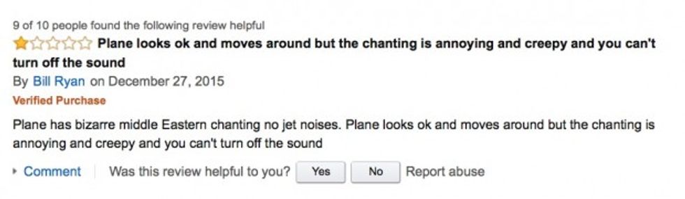 "My nephew opened a present. We put the batteries in and didn't get what we expected," Bjorn Thorpe told KING-TV. "The plane is supposed to make flying noises and plane noises."