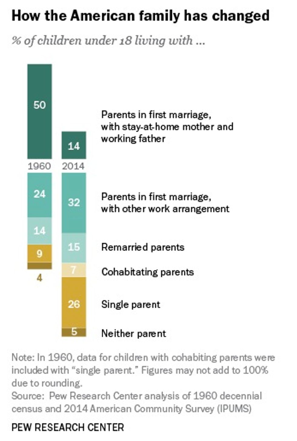 In 1960, about half of American children lived in a household that fit the description. Today, only 14 percent of children do.