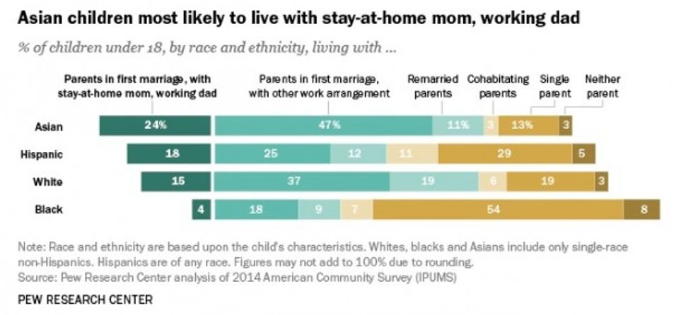 Asian children are the most likely to live in a “traditional” household, while black children are the least likely.