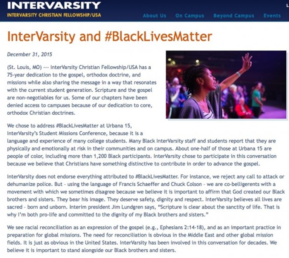 InterVarsity was careful to note that the organization does not endorse every element of the Black Lives Matter movement.