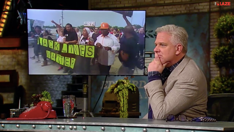 Beck said the Black Lives Matter protesters were responsible for "burning towns to the ground, killing cops in multiple cities, looting, rioting" and "executing officers in cold blood," referencing the activist march in which protesters chanted, "Pigs in a blanket, fry 'em like bacon."