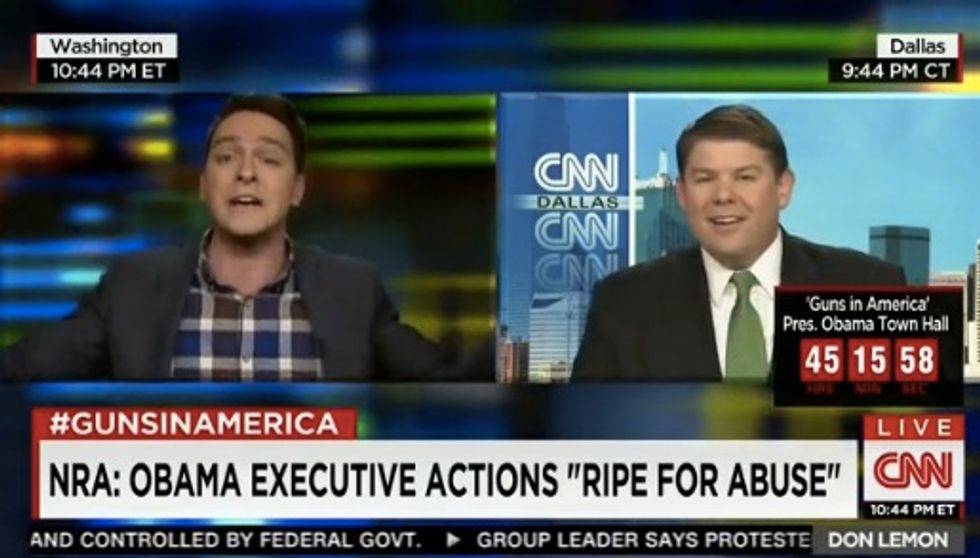A "CNN Tonight" segment about President Barack Obama's executive actions on gun control quickly devolved into a shouting match on Tuesday night after host Don Lemon asked guests whether the gun lobby is holding Congress "hostage."