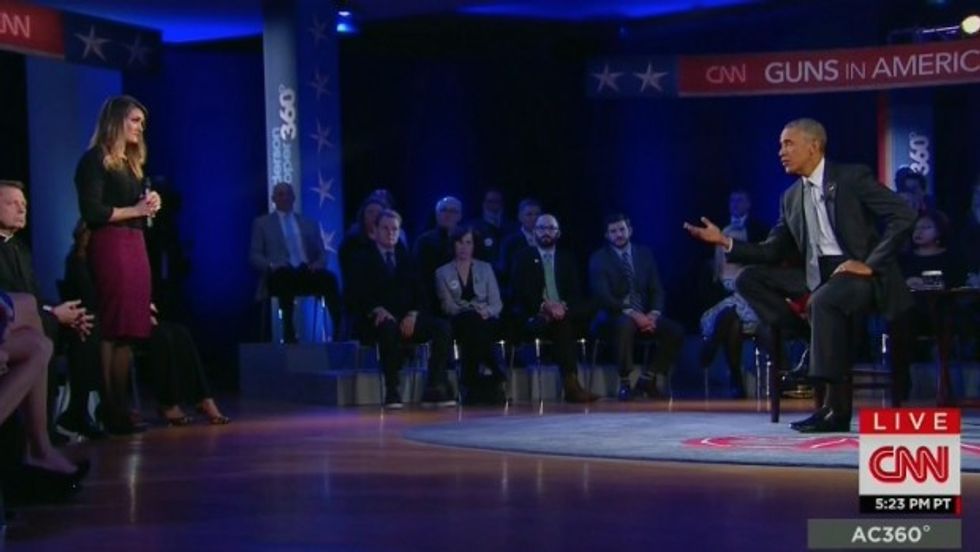 A rape survivor and mother of two confronted President Barack Obama during a Thursday town hall, asking the president why his administration favors measures that "make it harder for me to own a gun" and in turn "less safe."