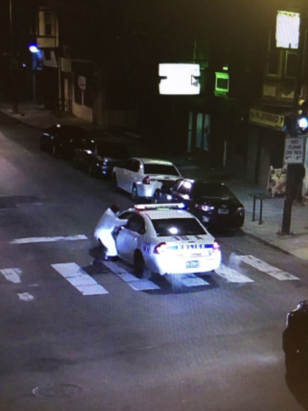 The Philadelphia Police Department released photos Friday from surveillance video of the ambush, which shows the gunman wielding his weapon through the window of the officer's patrol car.