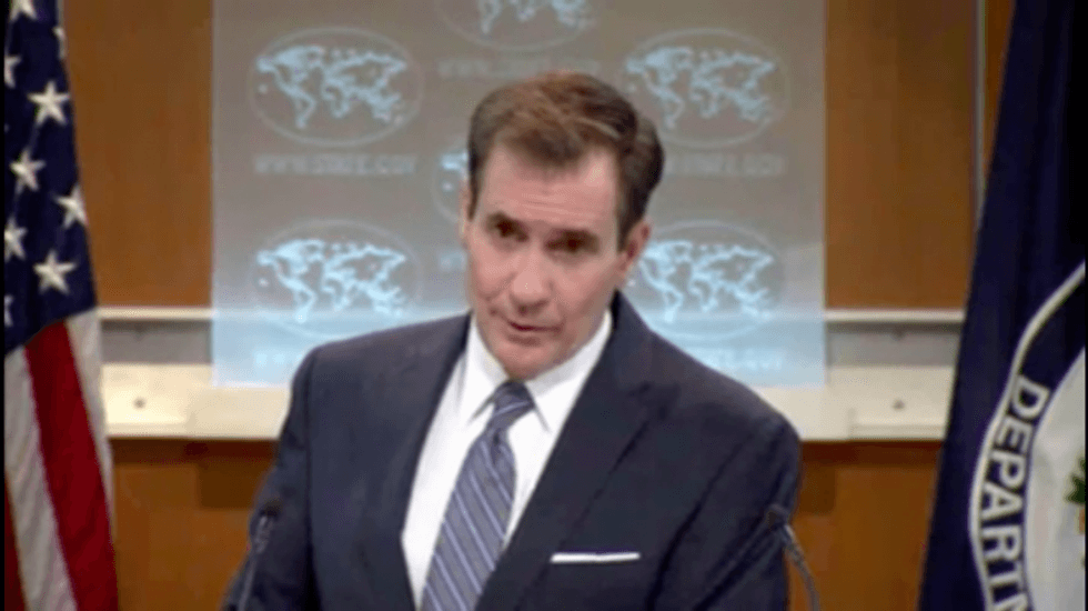 State Department spokesman John Kirby discussing the missing U.S. hellfire missile during a press conference Friday, Jan. 8. (Image source: YouTube screenshot)
