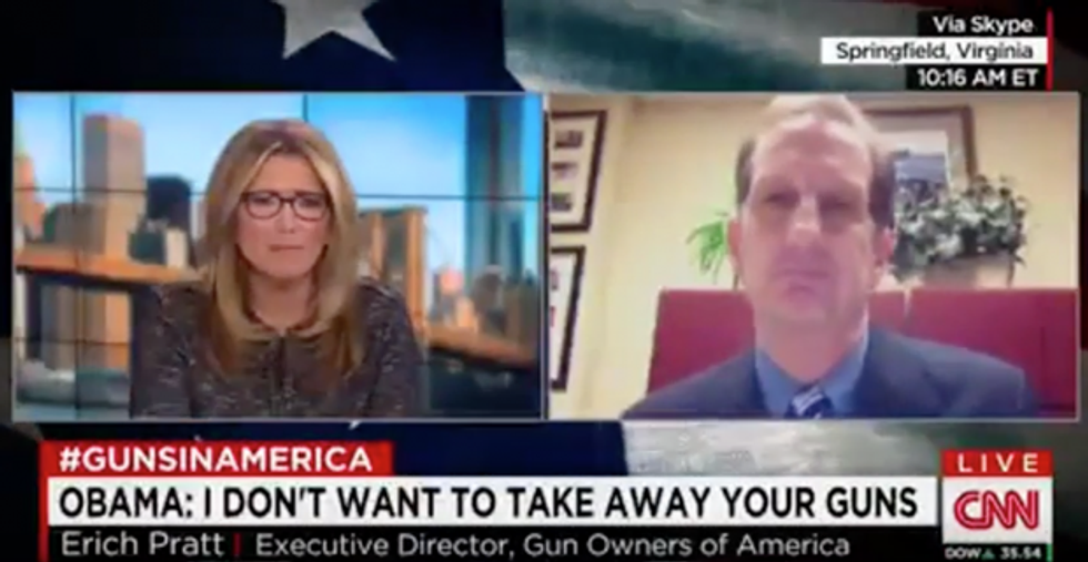 CNN anchor Carol Costello clashed with Erich Pratt, executive director of Gun Owners of America, over the Second Amendment on Friday — and things became briefly tense after she claimed the majority of Americans support President Barack Obama’s executive actions, but didn’t want to give him a chance to respond.