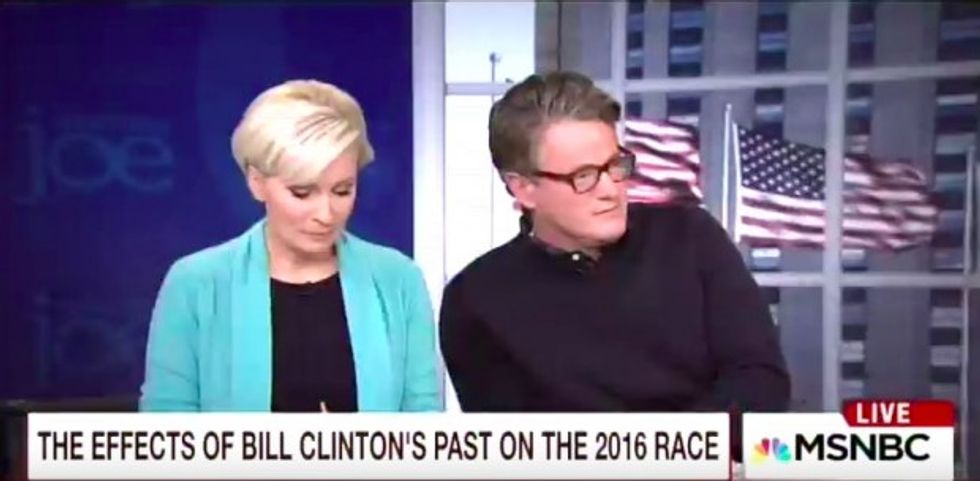 Though the co-hosts said several times that they were not interested in rehashing former President Bill Clinton's past sexual indiscretions, they did want to discuss the Hillary Clinton's potential involvement in covering up or silencing women who claimed to have been abused by the former president — especially as she campaigns on the premise of women's rights. However, guest former Rep. Harold Ford Jr. (D-Tenn.) clashed with the two hosts, especially Scarborough.