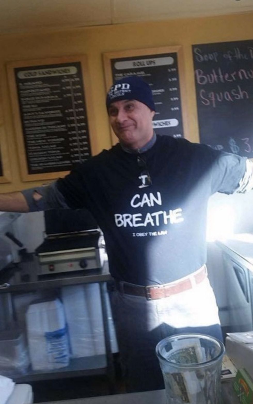 “The owner, proudly wearing a t-shirt supporting the police who killed Eric Garner.”