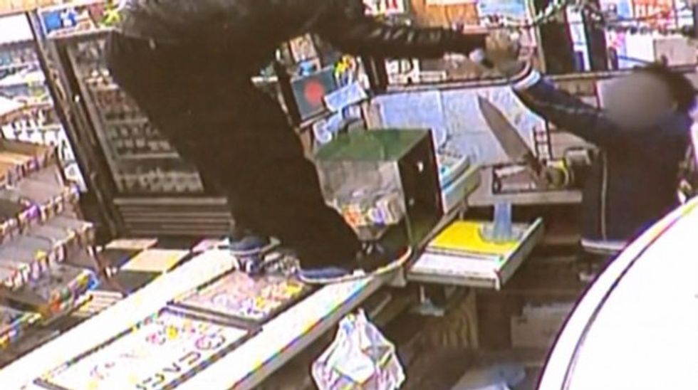 A robber walked into a convenience store and attempted to fight the store's clerk, but the attacker wasn't the only one with a knife.