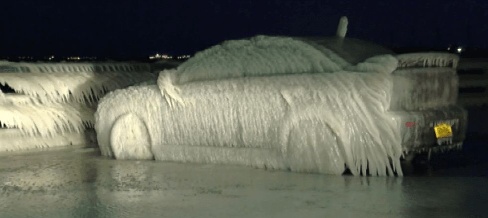 That's what one driver, who had parked along Lake Erie, discovered Monday after coming back to find his car literally frozen in place.