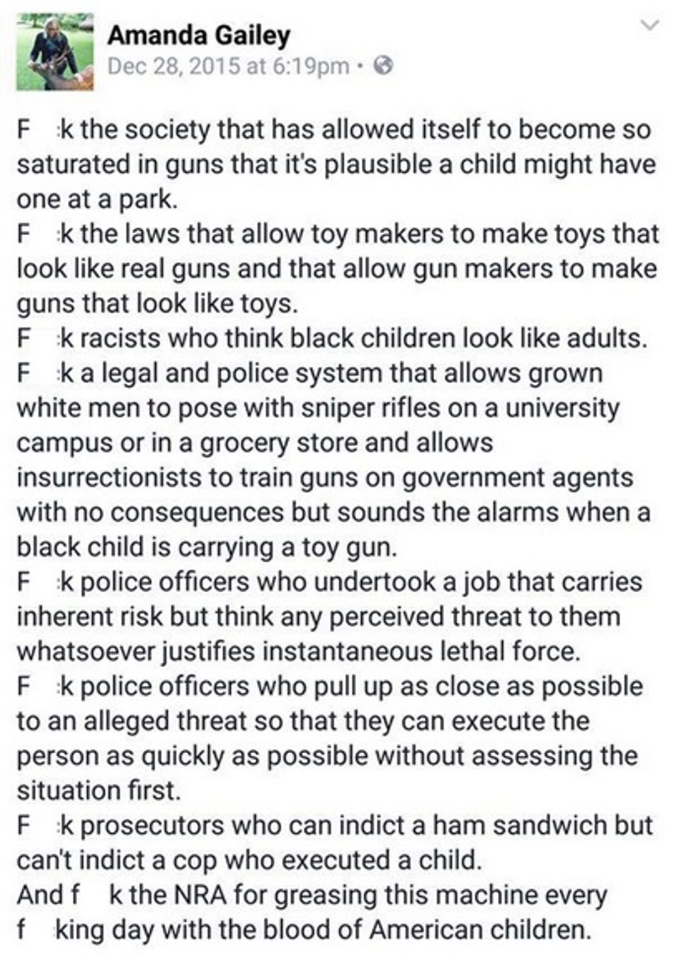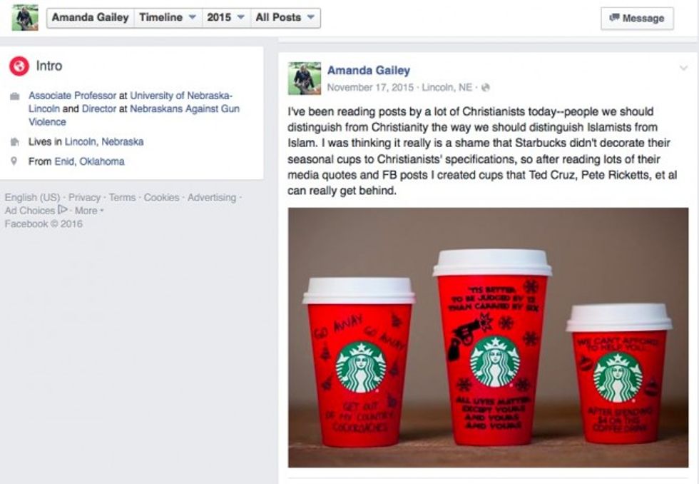 A Facebook page belonging to Amanda Gailey lists her as director of Nebraskans Against Gun Violence and associate professor at the University of Nebraska-Lincoln. On Dec. 28, the following was posted on the Facebook page (profanities redacted):